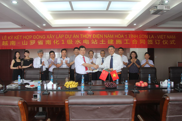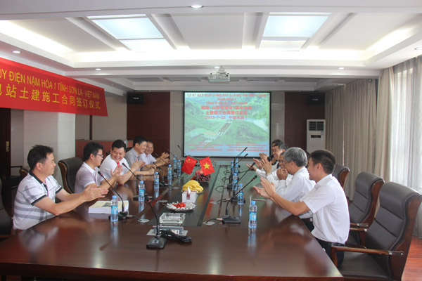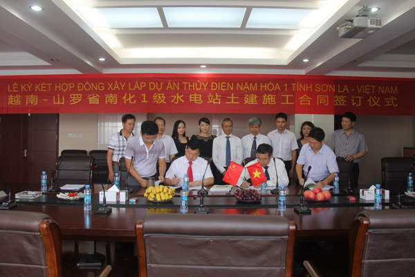 2013年7月22日,越南山羅省南化一級(jí)水電樞紐項(xiàng)目建設(shè)合同簽字儀式在我公司南昌市總部順利舉行,越南ANPHA水電投資股份公司董事長(zhǎng)阮平陽(yáng)和我公司董事長(zhǎng)王元旦分別代表雙方簽署合同。出席簽約儀式的還有越南建設(shè)與機(jī)電股份公司(MECO)董事長(zhǎng)阮玉平、ANPHA水電投資股份公司總經(jīng)理陳重朵,我公司副總經(jīng)理張周平、副總工程師鄒春明、項(xiàng)目經(jīng)理夏愛(ài)民等。