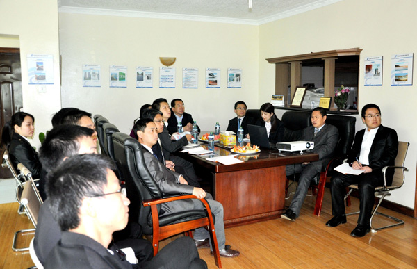 當?shù)貢r間2015年7月16日,中國駐肯尼亞經(jīng)濟商務處參贊郭策一行到我司肯尼亞分公司調(diào)研。肯尼亞分公司總經(jīng)理賀翔、副總經(jīng)理彭紅軍及相關人員迎接并陪同調(diào)研。