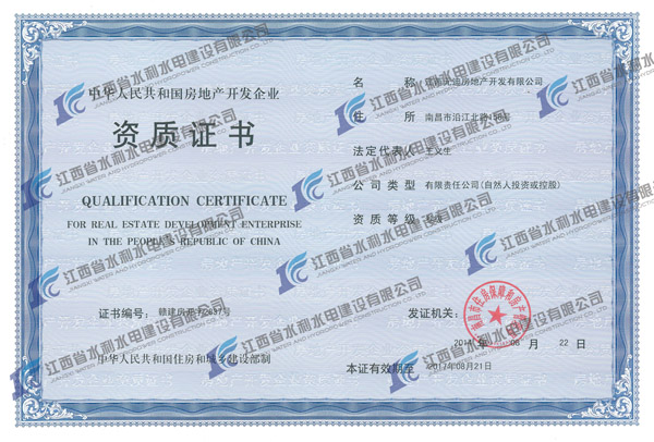 2014年8月22日,經(jīng)南昌市住房保障和房產(chǎn)管理局審核批準(zhǔn),江西水建子公司江西元迪房地產(chǎn)開發(fā)有限公司房地產(chǎn)開發(fā)資質(zhì)成功獲得延續(xù)。
