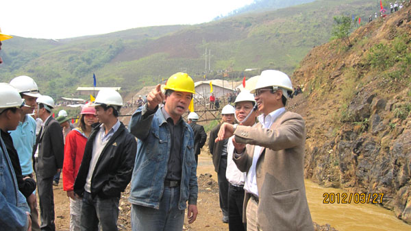 參加截流儀式的有越南工商部副部長、世界銀行官員、越南銀行官員、業主MECO公司董事長阮一平、安發水電投資股份公司董事長阮平陽和總經理陳重朵等。我公司駐越南分公司經理鄒春明和項目經理夏愛民分別向參加儀式的嘉賓詳細介紹了工程施工情況,各方嘉賓亦對工程施工情況表示贊賞。越南工商部副部長說,“南化二級電站是他管轄的十二個省市里進度最快、質量最好的項目”。