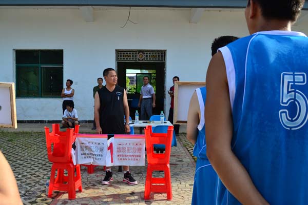 金灘鎮(zhèn)黨委書記京海華宣布“江西水建杯”籃球賽開(kāi)始
