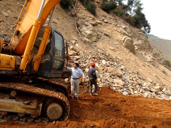 胡鴻煌副總經(jīng)理現(xiàn)場指導洞口水庫除險加固工程圍堰施工