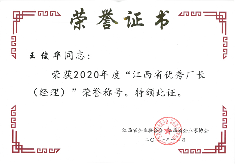 集團(tuán)資訊近日,江西省企業(yè)聯(lián)合會(huì)、江西省企業(yè)家協(xié)文件《關(guān)于表彰“2020年度新時(shí)代江西杰出企業(yè)家、江西省優(yōu)秀企業(yè)、江西省優(yōu)秀企業(yè)家、江西省優(yōu)秀廠長(zhǎng)(經(jīng)理)”的決定》公布了2020年度江西省優(yōu)秀企業(yè)等獎(jiǎng)項(xiàng)的評(píng)選結(jié)果。集團(tuán)獲評(píng)江西省優(yōu)秀企業(yè);集團(tuán)董事長(zhǎng)王元旦獲評(píng)新時(shí)代江西杰出企業(yè)家;集團(tuán)常務(wù)副總裁王俊華獲評(píng)江西省優(yōu)秀廠長(zhǎng)(經(jīng)理)。至此,集團(tuán)已連續(xù)二十二年被評(píng)為“江西省優(yōu)秀企業(yè)”。榮譽(yù)是一種肯定,更是一種責(zé)任,集團(tuán)將以此為動(dòng)力,新的一年再接再厲,繼續(xù)以優(yōu)秀水利龍頭企業(yè)的標(biāo)準(zhǔn)嚴(yán)格要求自己,不斷超越自我,開創(chuàng)企業(yè)發(fā)展多元化新格局,持續(xù)提高市場(chǎng)競(jìng)爭(zhēng)力和社會(huì)影響力。
