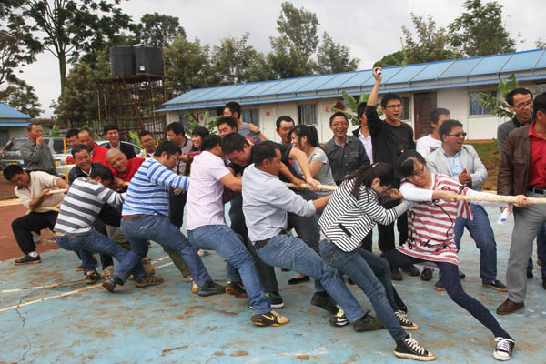 為了凝聚精神,交流感情,2014年12月25日,肯尼亞分公司第一屆迎新聯(lián)誼會在雙河正式舉辦。本次聯(lián)誼會共設(shè)拔河、籃球、CS三項團體比賽項目,乒乓球、象棋、升級三項個人比賽項目及趣味套圈項目,肯尼亞辦事處及各在建項目均組隊參加了比賽。