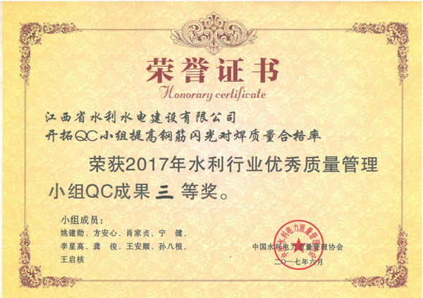 近日,中國水利電力質(zhì)量管理協(xié)會(huì)水利分會(huì)在湖南省長沙市,舉辦了2017年水利行業(yè)優(yōu)秀QC小組成果發(fā)表會(huì),并在本次發(fā)表會(huì)上發(fā)布了206項(xiàng)QC成果。本次成果發(fā)表會(huì)上,我公司發(fā)表的4項(xiàng)QC成果中, 1項(xiàng)QC成果獲一等獎(jiǎng),2項(xiàng)QC成果獲二等獎(jiǎng),1項(xiàng)QC成果獲三等獎(jiǎng)。公司已連續(xù)3年獲得水利行業(yè)優(yōu)秀QC小組成果獎(jiǎng)。