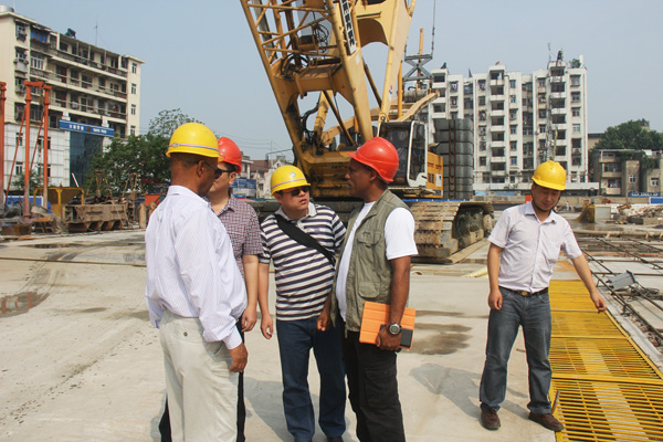 埃塞客人一行參觀武漢地鐵7號線防滲墻施工現(xiàn)場