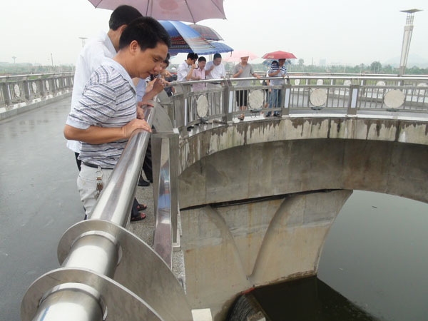 三級(jí)抬水壩與人行景觀(guān)橋下游面全景